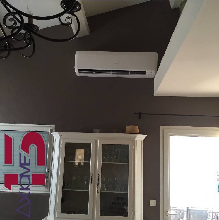 Nous avons installé dans ce salon d'environ 70m2 avec une hauteur de plus de 3m, une climatisation réversible murale de la marque Mitsubishi.