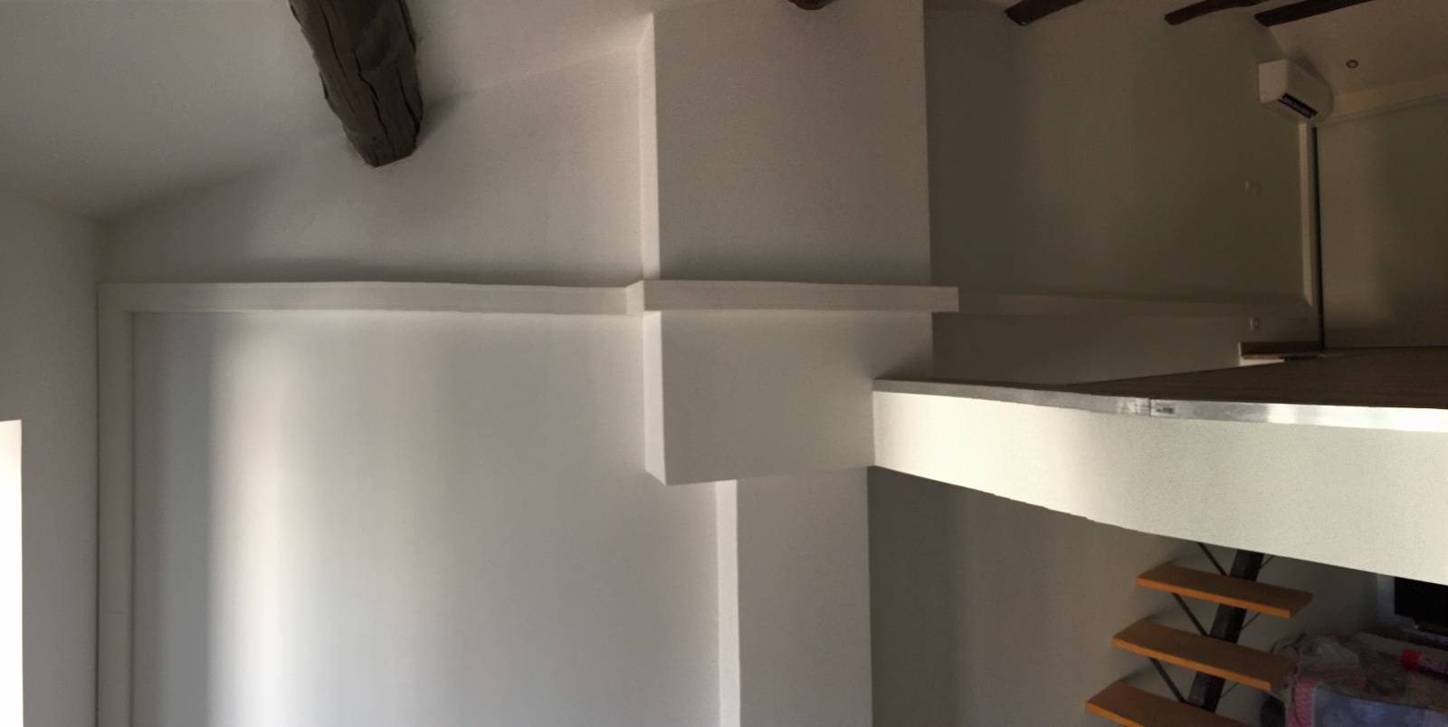 Nous avons installé ici, dans cet appartement situé sous les toits de Marseille, 2 appareils type monosplit de la marque Mitsubishi afin de traiter la partie Mezzanine ainsi que la partie séjour.