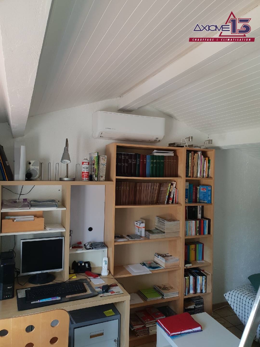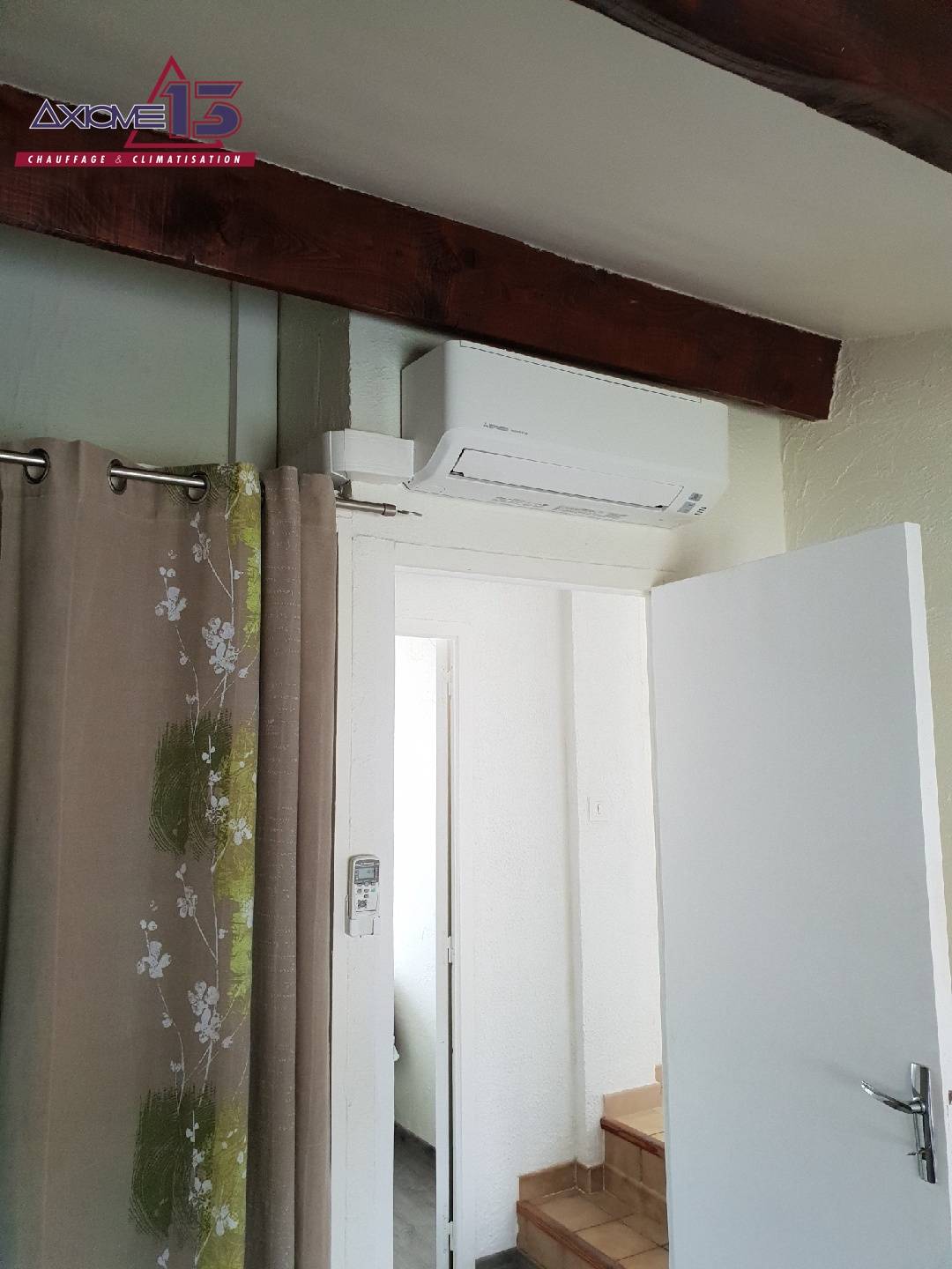 Lors de ce chantier, nous avons installés un groupe extérieur type trisplit de la marque Mitsubishi raccordée à 3 unités intérieures murales, gamme Access.