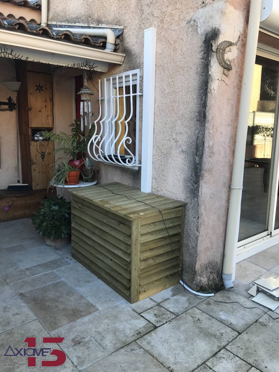 Pour le côté esthétique, un cache groupe extérieur en bois a été installé sur l'unité extérieure la plus visible des deux, située devant le garage de la maison. Ce cache groupe permet de maintenir l'aspect visuel agréable de votre domicile tout en garantissant une circulation d'air optimale pour le bon fonctionnement de l'appareil.