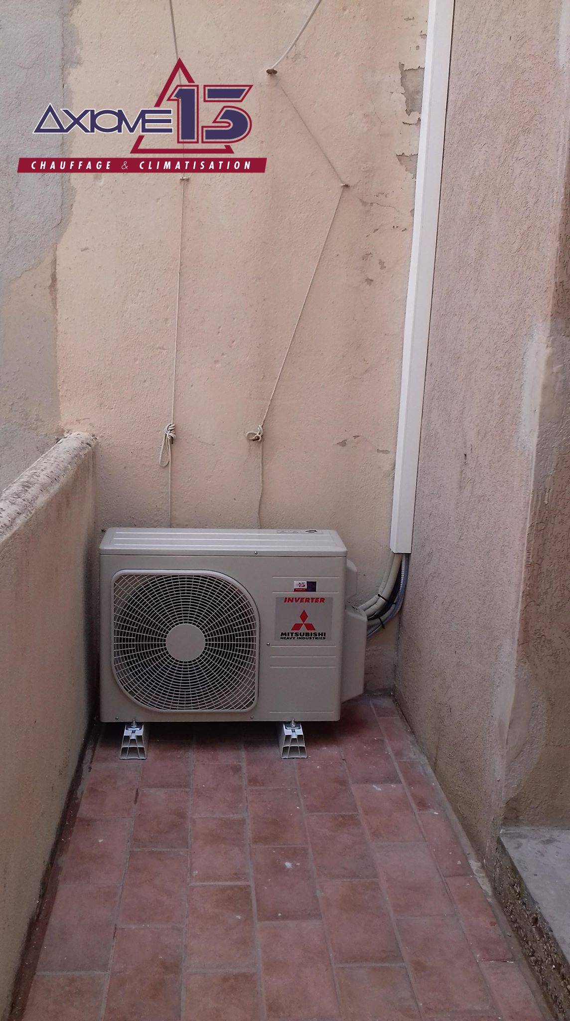2 appareils réversibles de la marque Mitsubishi, raccordés à un groupe extérieur type bi-split. La contrainte était la largeur du balcon, pour cela