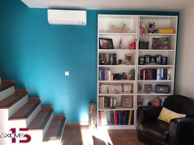 Nous avons réalisé dans ce séjour de 35m2, l'installation d'une climatisation réversible murale de la marque Mitsubishi. Cet appareil, d'une puissance de 3,5Kw, permettra à toute la famille de profiter pleinement de leur séjour, été comme hiver, tout en faisant des économies d'énergie.
