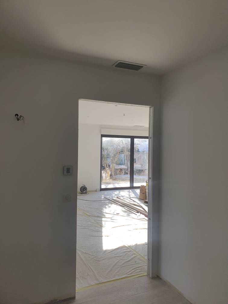 Dans un 3ème temps, une fois peinture et façade effectuées, nous avons installés le groupe extérieur avec raccordement et les grilles à l'intérieur avec les thermostats de marque Airzone.